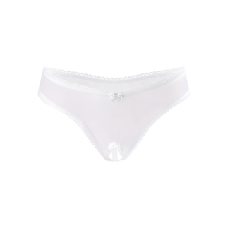 Ce ravissant string blanc séduit par son allure ludique combinée à une sensualité libérée. À l'avant, un papillon stylisé met en valeur votre silhouette, offrant des aperçus séduisants dans l'entrejambe. Derrière, le string met en avant vos fesses, et ses fines bretelles épousent délicatement votre peau. Le style ouvert audacieux permet de garder le string lors de vos jeux amoureux. Le tissu se pose doucement sur votre peau et les matières extensibles garantissent une coupe idéale (taille 34-40).