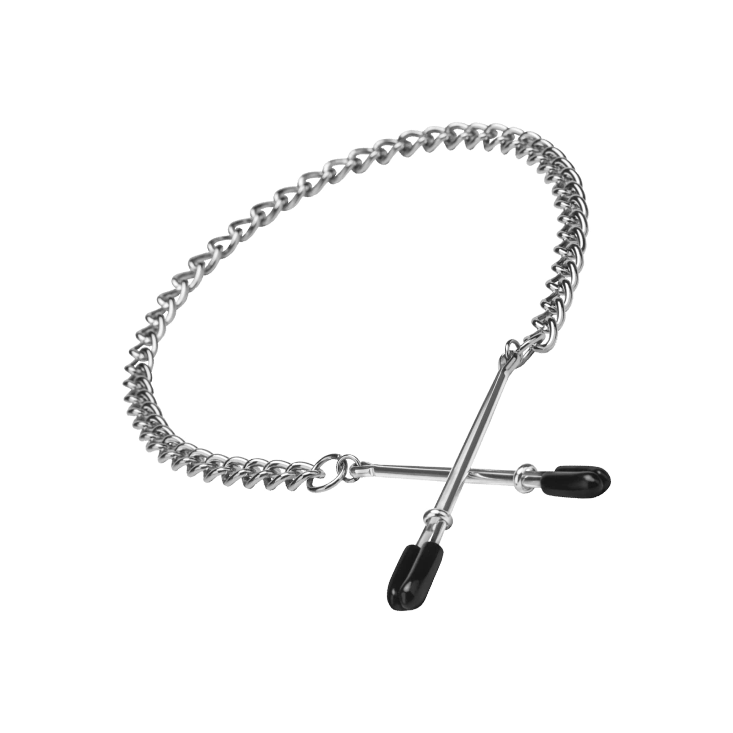 Ces pinces sont doublées d'un revêtement en caoutchouc blanc pour un contact agréable. Une pression sur l'extérieur ouvre les pinces. Le ressort assure une stimulation intense de vos mamelons. La chaîne de connexion devient un atout visuel et peut accentuer la stimulation lorsqu’on tire doucement dessus.