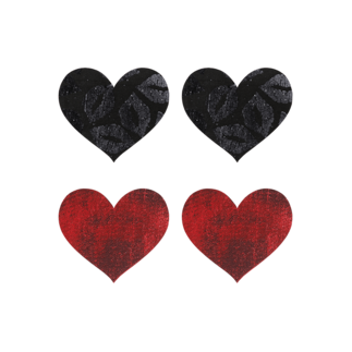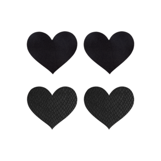 De pasties komen in een dubbele verpakking. Eén uitvoering is klassiek zwart en straalt eeuwige elegantie uit. Het andere paar heeft een dierlijk slangenhuidpatroon dat zorgt voor een gewaagde uitstraling. Verwijder de huidvriendelijke stickers voorzichtig van de beschermfolie en plak ze op een schone, droge huid. Hypoallergene, latexvrije medische kwaliteit lijm.